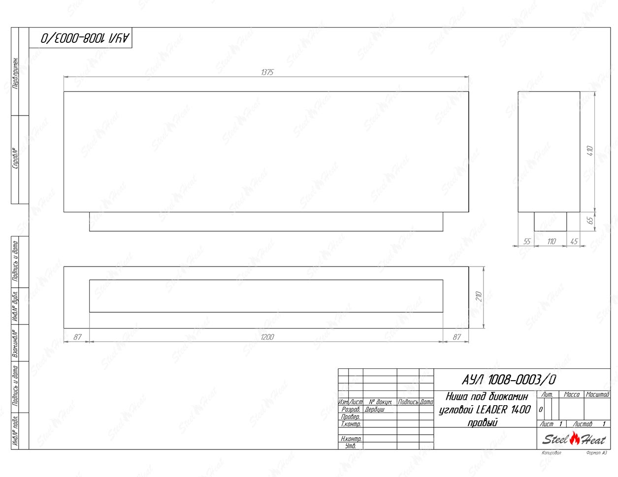 Встраиваемый Биокамин угловой SteelHeat Leader 1400 правый предназначен для встраивания в глухие ниши из гипсокартона, кирпича, пеноблоков, бетона.